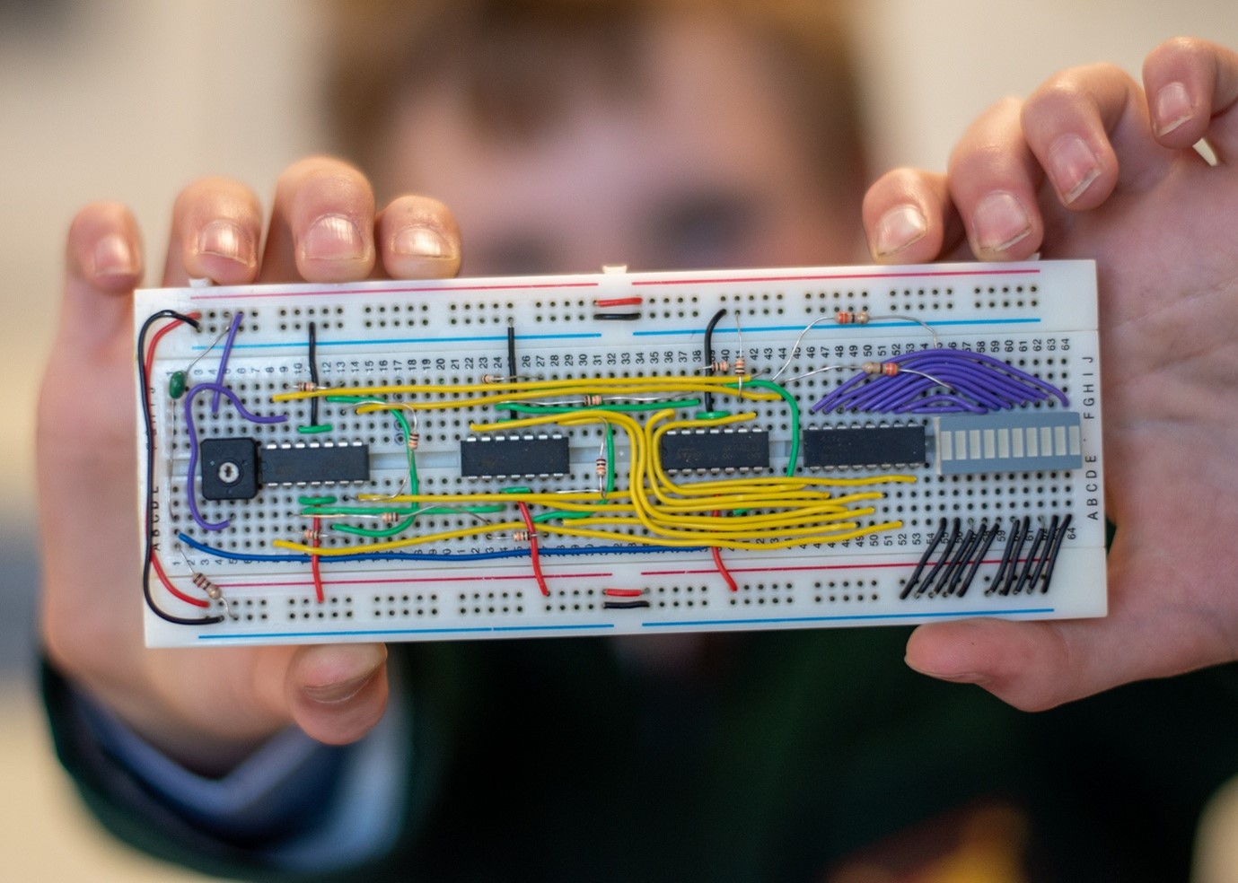 Electronics students develop and test components and systems using advanced level test equipment to solve problems in the real world. We are fortunate to have a dedicated Electronics lab that allows our specialist staff to deliver a course that prepares students well for a future career in any technical discipline.